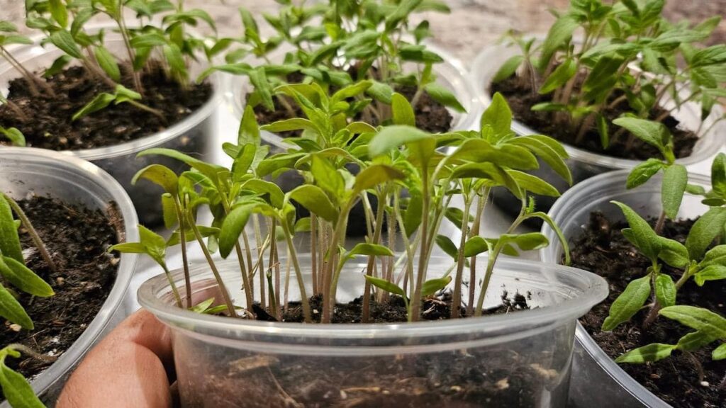 Once the seedlings have developed strong roots and a few sets of true leaves: